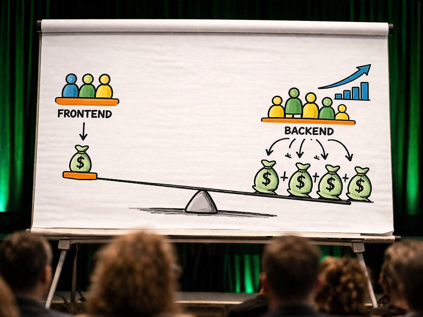 Om dit proces zo efficiënt mogelijk te laten verlopen, met zo min mogelijk moeite en tijd, begeleid je jouw klanten het beste op die klantreis door middel van marketing. Níet door sales. Níet door veel duur 1-op-1 contact met je klanten, maar door slimme marketing in te zetten. Backend Marketing.